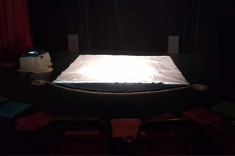 ou en frontal avec le public assis en gradin au plus près du plateau